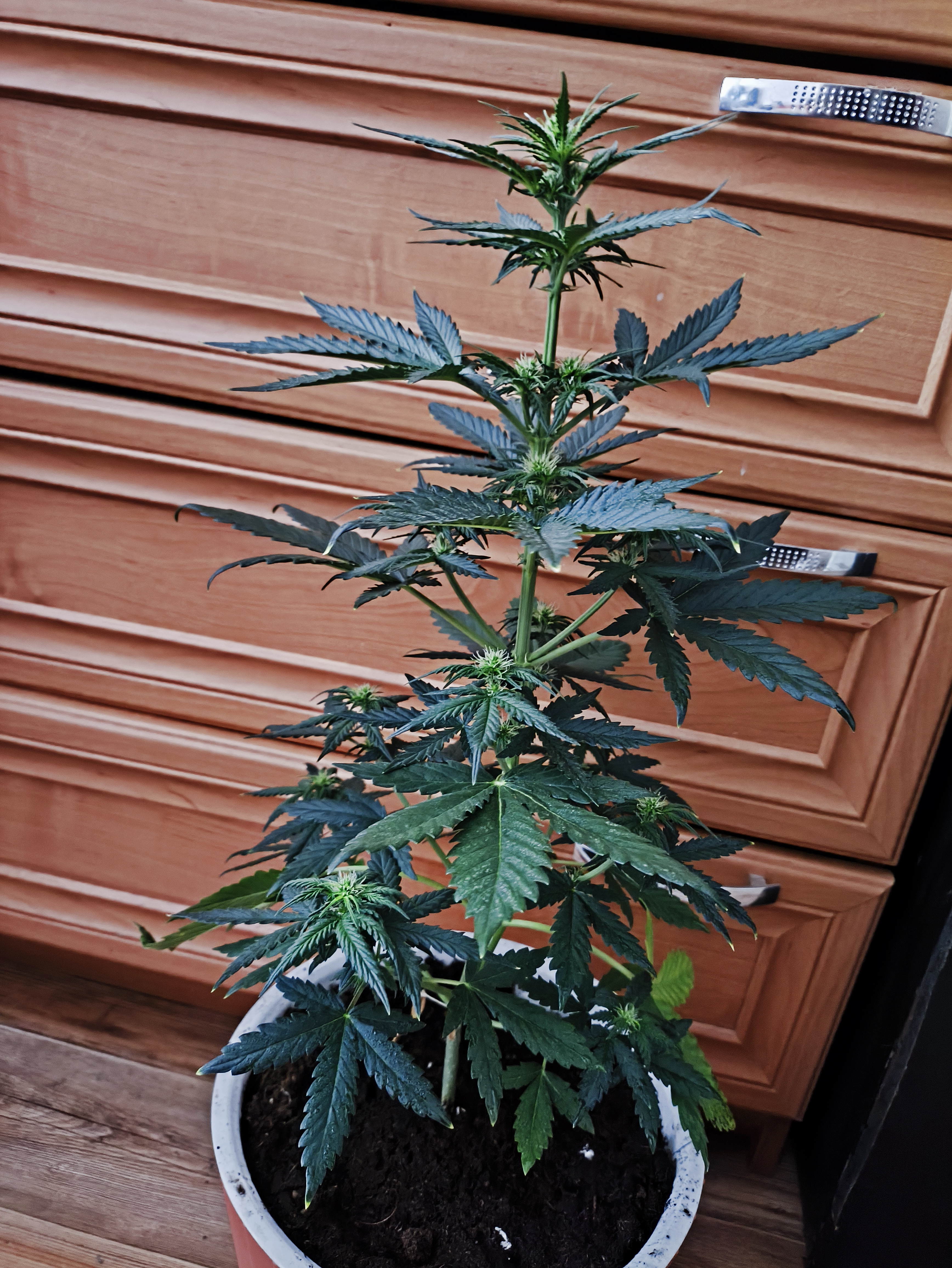 Прошло уже 37 дней с момента когда она еще плавала в стакане как семечка. А уже предцвет ловит. Горшок не большой, поэтому поливаю почаще. Из удобрений ничего сверхъестественного. Спасибо Growerz за отличные семена)