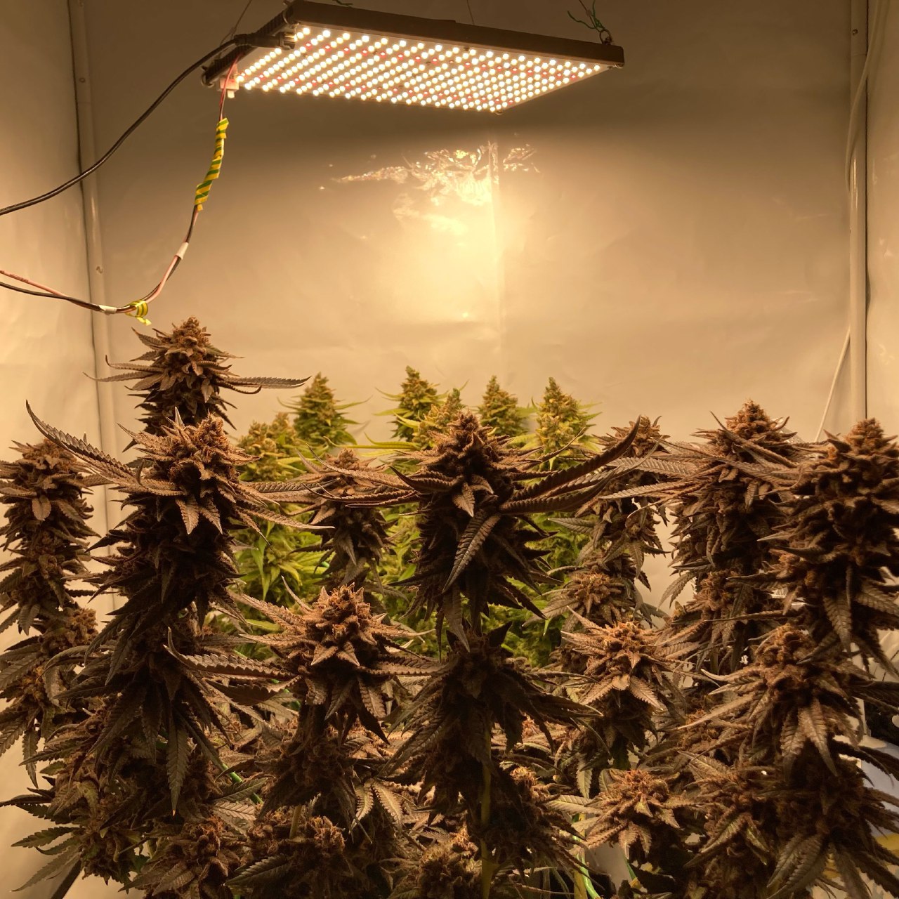 Один их моих любимых сортов, так как через два месяца вы будите собирать большой и качественный урожай, около 250-300 грамм, по-моему лучший вариант, как для начинающих гроверов, так и для опытных. Легко подаётся тренировкам, делал топпинг и лст, результатом доволен, потому что все боковые ветви и центральные колы собрали как можно больше почек и смолы, из которых получился лучший стафф, попробуйте выращивать в теплице, или на большом, свободном участке в ауте. Неприхотлива и устойчива к плесени.