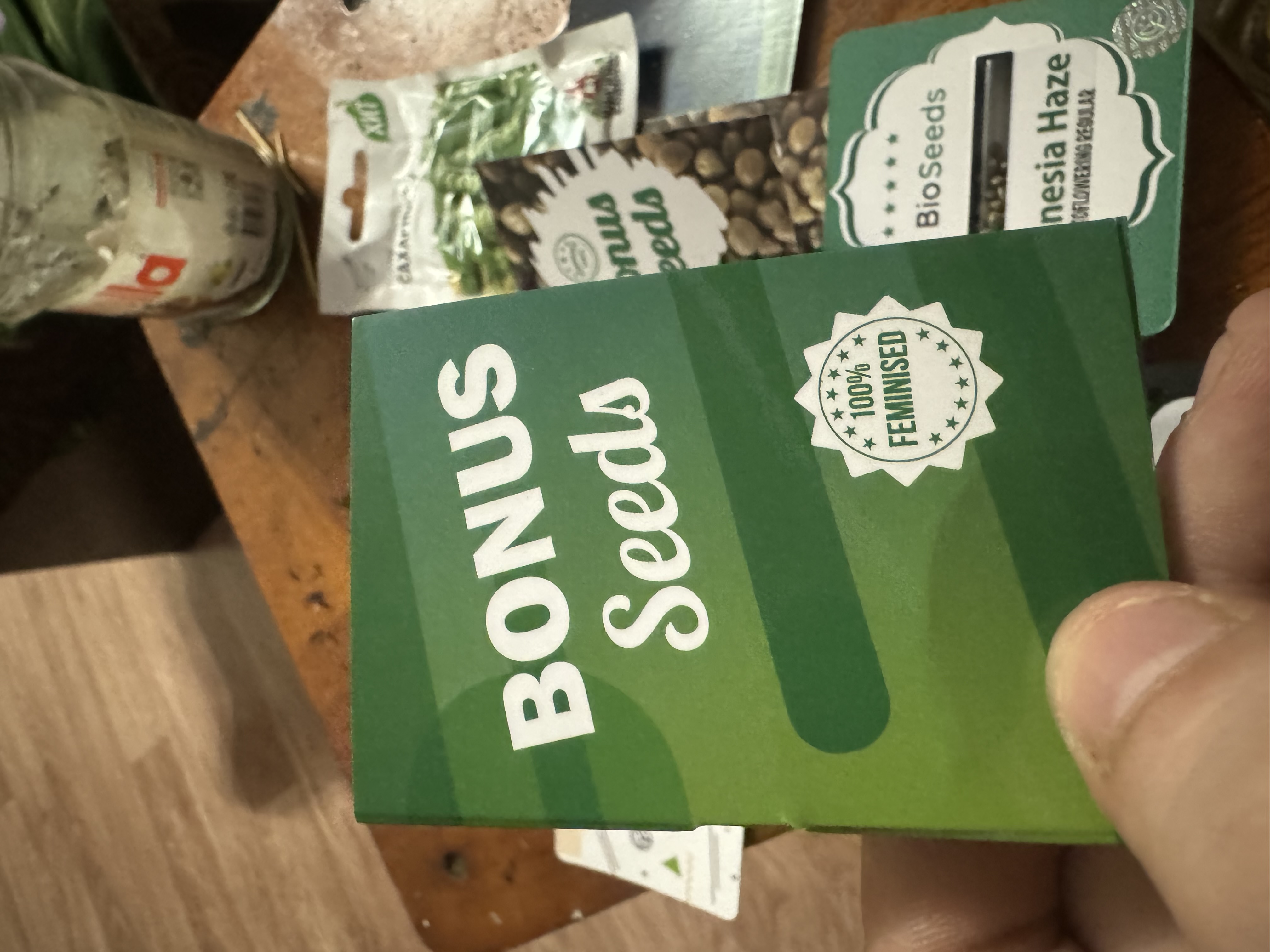 Пришло 2 семечка бонусом к Гагарину. Собрал свой первый гроубокс на 2 горшка, в один Гагарин посадил, в другой этот бонус. Бонус проклюнулся на 2 дня раньше. Растет как в описании, утром бокс откроешь для полива, а вечером уже не узнаешь-увеличивается в разы. Не прихотлив вообще! Когда достиг роста до половины между горшком и лампами, понял что высоты бокса ему не хватит ( высота бокса 1,5 метра) хотел сеткой рост уменьшить-пророс сквозь сетку, когда между центральной колой и лампой оставалось 20 см. подвязал ее проволокой и загнул на 90 градусов. А хрен там! Она изогнулась и опять вверх! Короче в боксе уже места не осталось, центральная кола и все отростки уперлись в лампы, загнулись и набухают шишками. Короче его проще вырастить, чем заставить не уродиться. И самое главное: сегодня этому чуду всего 38 дней и сидеть ему в горшке как минимум 17 дней, а нижние листья уже попробовал и очень остался доволен)))) И да, я совсем не спец в этих делах, это мой третий посев, и свет у меня вообще ни о чем получился-но ему всё ни по чём!!! Очень советую новичкам!!!! Кстати это мой первый отзыв чему либо в жизни-никогда и нигде ничего не писал. Но это чудо этого заслужило!!!!!!!!!!!!!