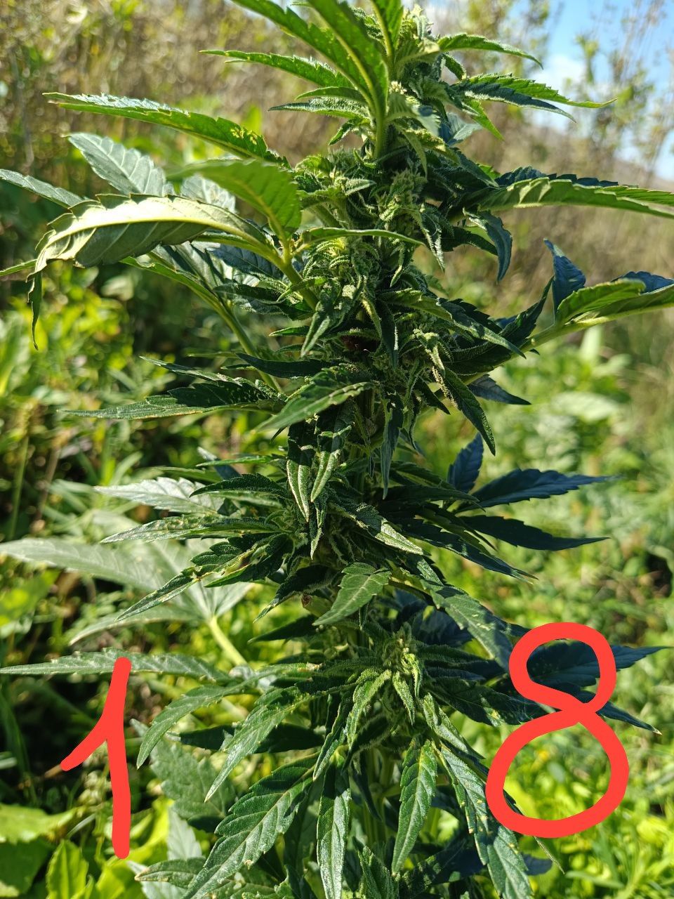 Растёт в не лучших условиях, но растёт. Кустик не такой ветвистый как хотелось бы. Погода еле тёплая, перепады температуры и дожди(. На последнем фото 7 недель. Запах классный, начал цвести, сорвал 1 листочек, попробую сегодня)