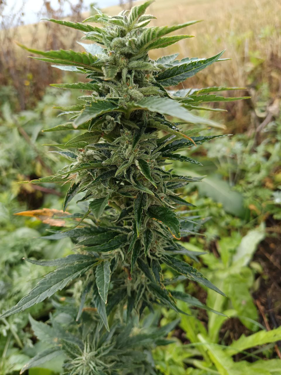 Конкретно эту Растишка переудобрил, результат на фото. Затем промыл два раза, оклемалась она, а вот уже нулевую температуру не выдержала. Собрал шишки какие были, урожай скромный по этому кусту, его ещё не употреблял. А вот по первому кусту у шишек аромат восхитительный и эффект тоже шикарный, четкий, яркий, мощный, можно и днём использовать, без последующей вялости. Днём дунул, через два часа за сел за руль. Все ок, сорт хороший неприхотливый, прям ухаживать за ним не нужно как я и он сам вырастит.