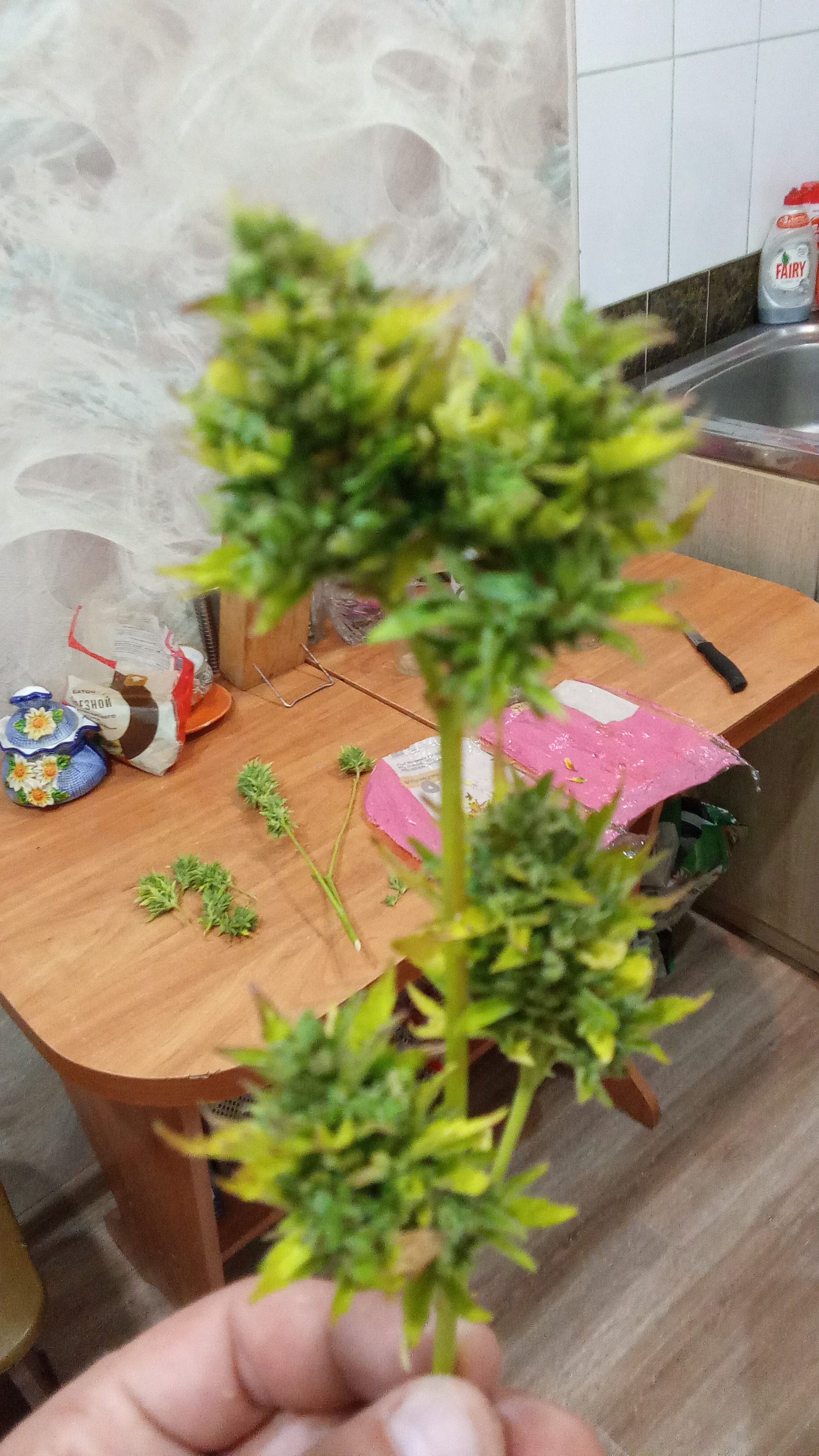 Растение зацвело и пора ей подстричься, отсечь все лишнее. Думаю получится неплохой урожай по итогу, но не будем забегать вперёд
