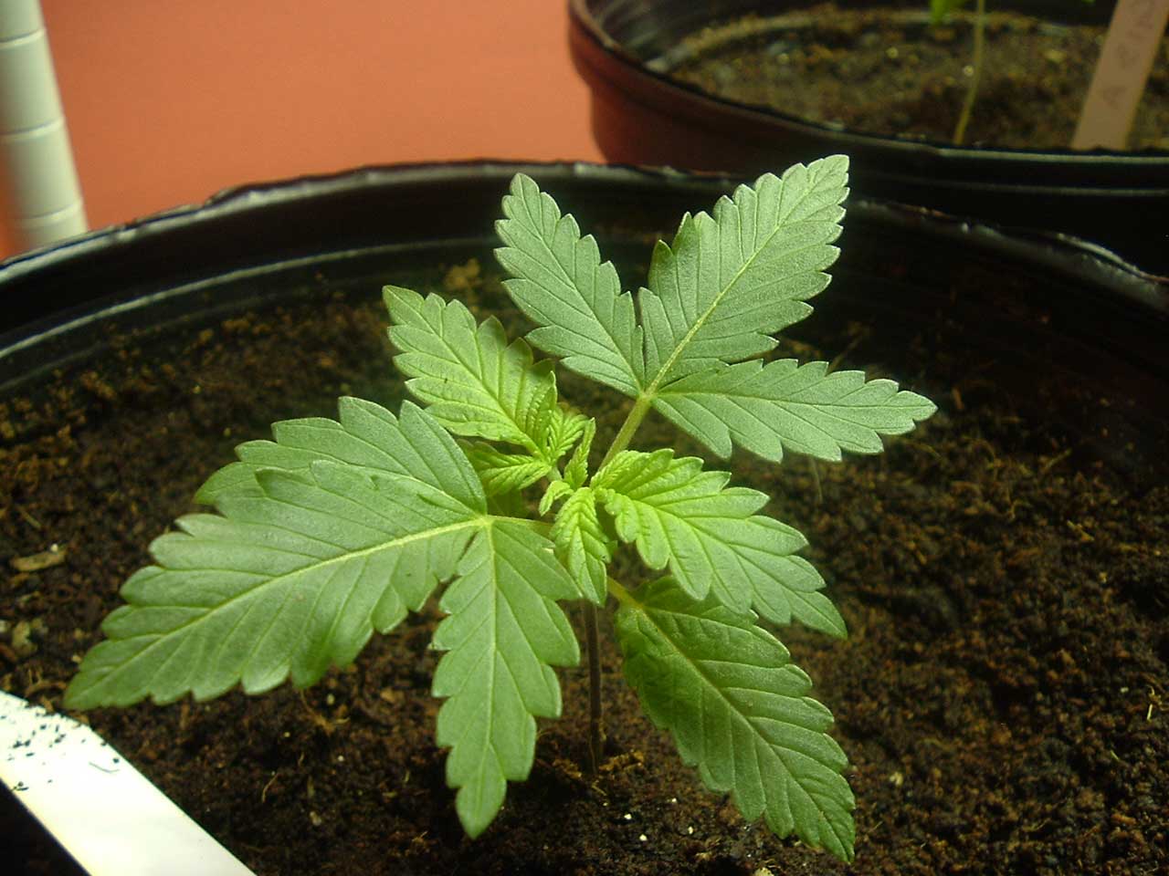 Сегодня нам уже неделя! Прет как на дрожжах! Пересадили в большой горшок на 7л .Пересадку переносят на ура. Стараюсь сильно не поливать. Генетика хорошая все кустики как один.